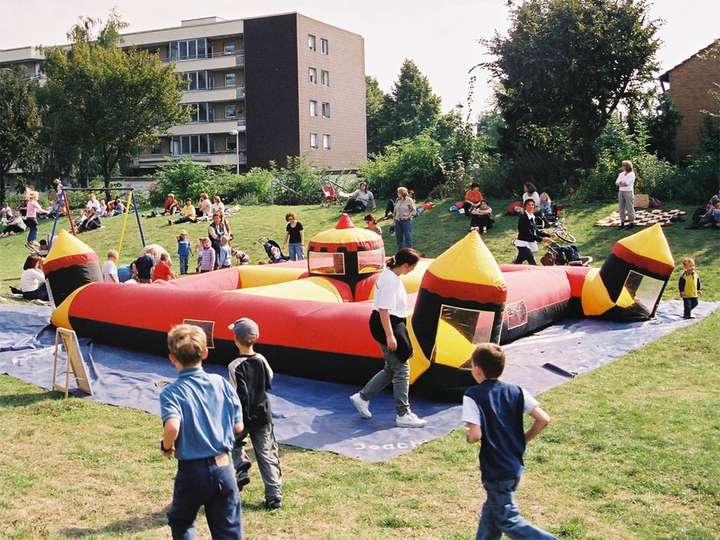 Obwohl dieses Großspielgerät optisch und von der Spielfreude her der Hüpfburg um nichts nachsteht, gestalten sich Auf-/Abbau, Aufsicht und Handhabung einfacher als bei einer Hüpfburg.